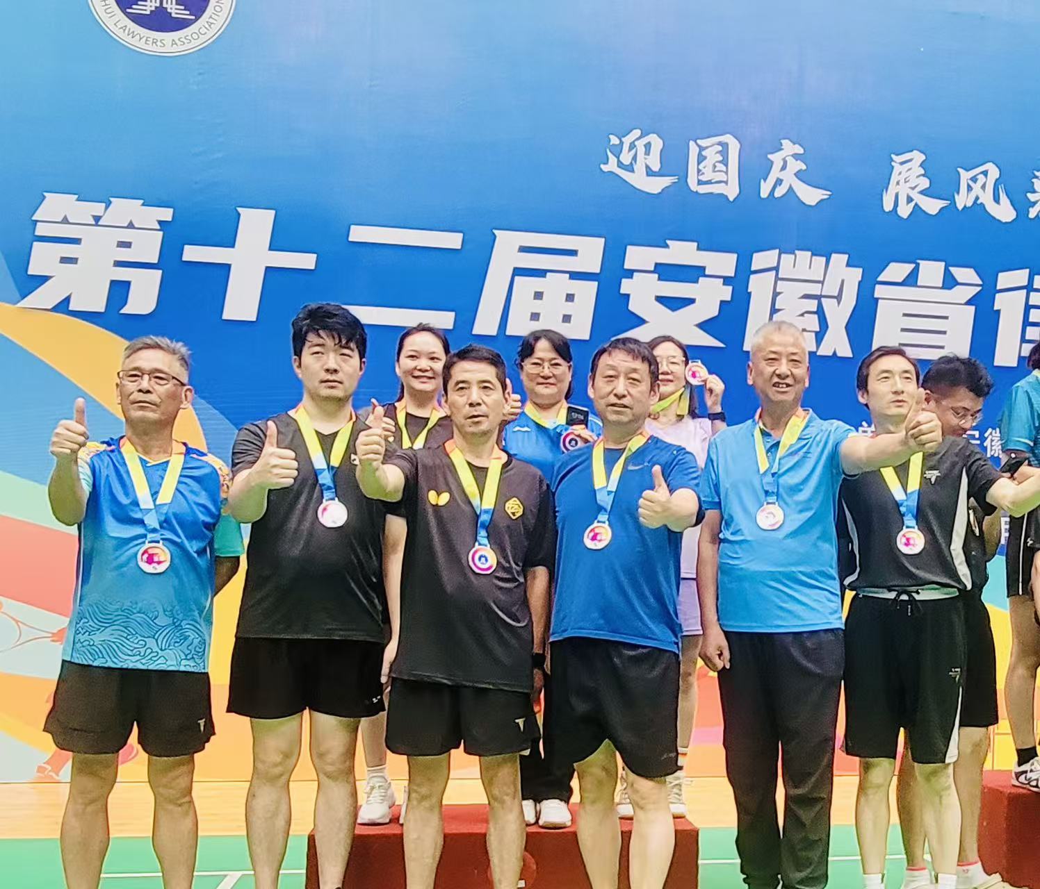 在羽毛球团体赛中,徐杰、袁帅、吴蔚三位律师代表铜陵队加入了皖南队,徐杰律师作为铜陵队的主力选手登上本次团体赛的赛场,与皖南队的来自其他地市的律师们共同联手夺得团体赛季军。