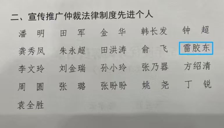 安徽创元律师事务所的严锐律师获评“优秀仲裁员”,该律所雷胶东律师获评“宣传推广仲裁法律制度先进个人”。