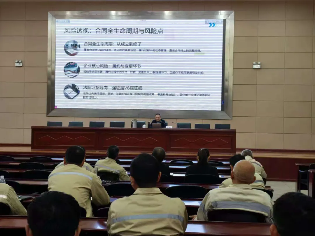 为深度服务区域经济、助力法治化营商环境持续优化,2025年11月14日,“铜陵市同心·律师服务团”团长、安徽景旺律师事务所主任余鲲律师,走进铜陵泰富特种材料有限公司,围绕“企业常见法律风险防范与合规管理”核心议题,进行了一场高密度、强实务的专题法律讲座。本次讲座旨在通过“精准滴灌”式的法律赋能,助力企业高层管理者与核心业务骨干,系统提升法律意识与风险防控能力,为企业行稳致远筑牢法治根基。