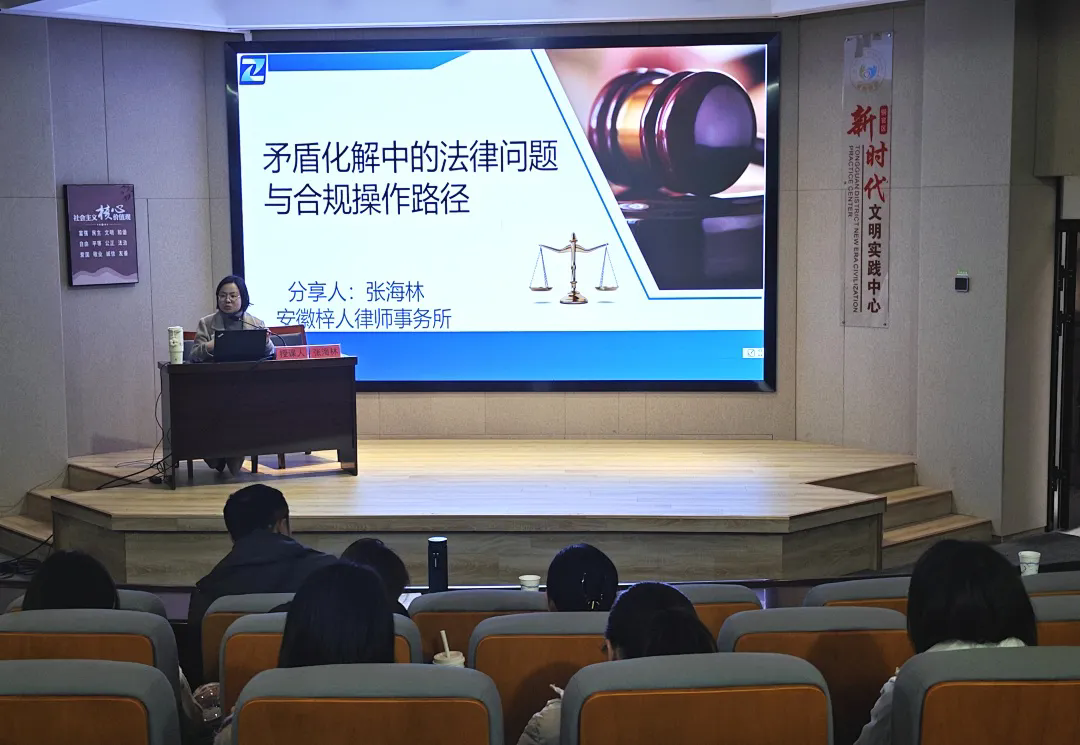 12月12日下午,张海林律师至铜官区新时代文明实践中心,以“矛盾化解中的法律问题与合规操作路径”为题进行了专题分享。讲座聚焦基层调解实务,系统阐述了调解工作的基本原则与法律依据,深入解析了常见民间纠纷背后的法律知识,并详细讲解了规范化调解流程、实用技巧及必须坚守的法律边界与红线意识。本次分享内容务实、贴近一线,旨在切实提升调解人员的法律素养与操作规范水平,推动矛盾纠纷在法治轨道内高效、妥善化解,为提升基层社会治理现代化水平贡献专业力量。