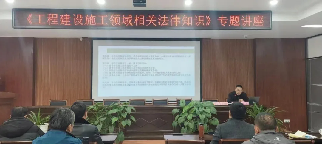 2025年12月27日下午,安徽众佳律师事务所应安徽省华通路桥工程有限责任公司邀请,开展《工程建设施工领域相关法律知识》专题讲座。该律所金华律师担任主讲嘉宾,为该公司机关全体人员、各单位主要负责人、各项目负责人以及合同管理人员等30余人进行了专业法律培训。