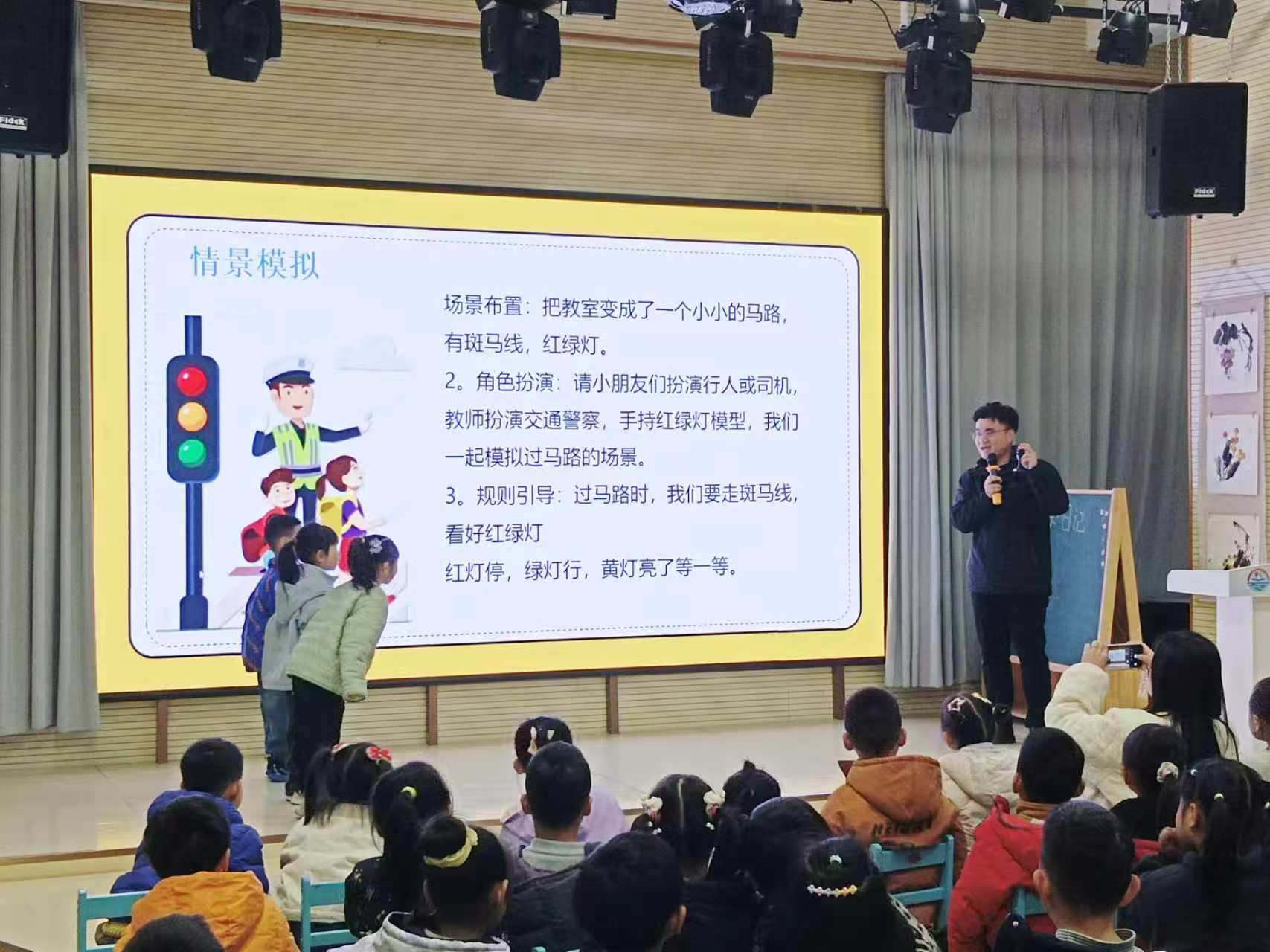 活动中,宋斌律师充分考虑幼儿的年龄特点,通过卡通图片、动画短片和情景模拟等寓教于乐的方式,向小朋友们讲解了“认识红绿灯”、“安全过马路”、“乘车安全须知”等基础交通规则。用通俗易懂的语言,引导孩子们认识到遵守交通规则的重要性,并教会他们如何安全出行,远离危险。在互动问答环节,小朋友们踊跃举手,积极回答,并带领孩子们开展“安全过马路”情景模拟游戏,现场气氛十分热烈。