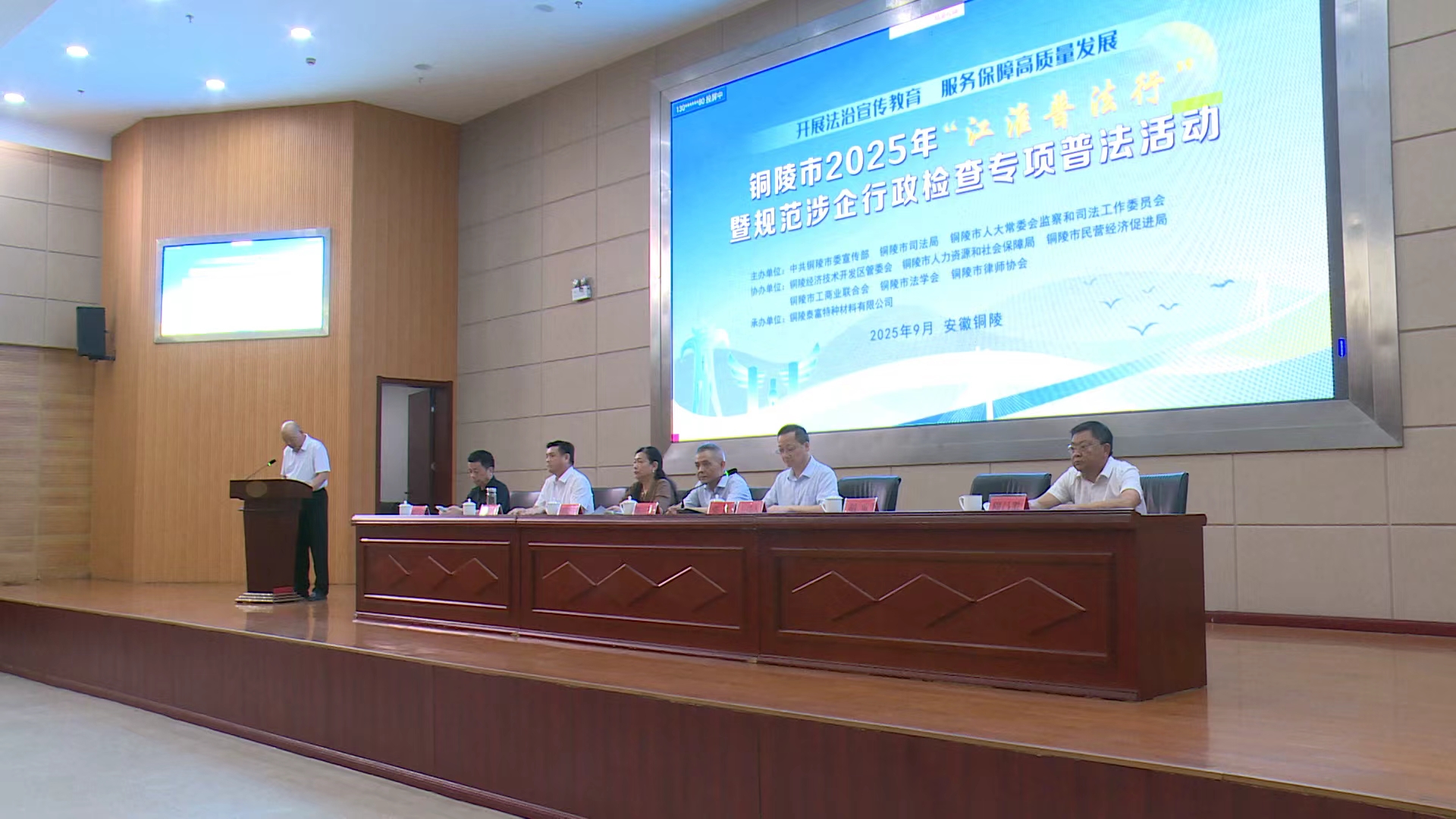 9月19日上午,我市2025年“江淮普法行”暨规范涉企行政检查专项普法活动启动仪式在铜陵经开区泰富特种材料有限公司大礼堂举行。活动现场,市人大常委会党组副书记、副主任陈昌生为市律协“为企法律服务队”授旗,标志着市律协以法治护航企业发展的专项行动正式拉开帷幕。