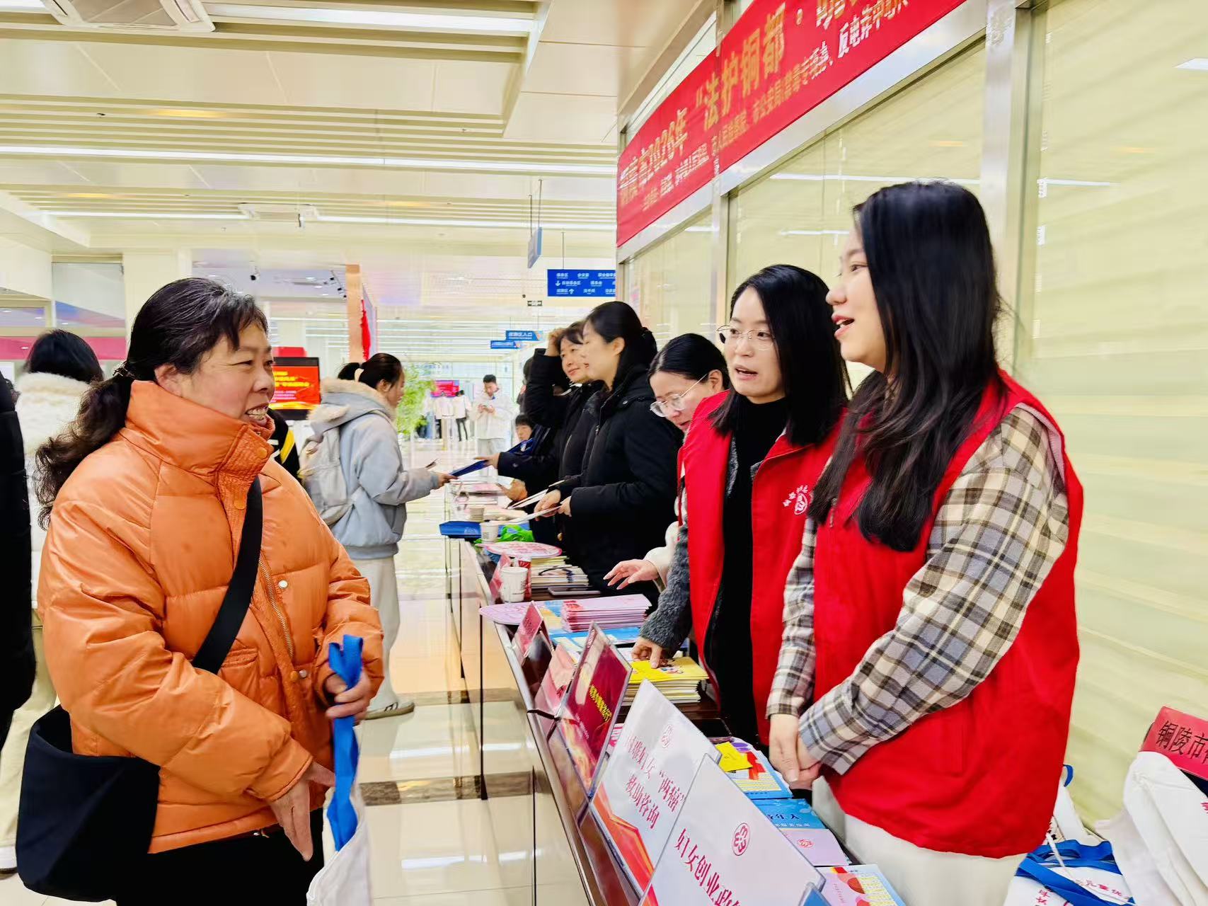 3月7日上午,由市妇联、市总工会、市中级人民法院、市检察院、市司法局、市公安局以及市律师协会共同主办的“法护铜都·皖美巾帼普法行”宣传活动在市人力资源市场拉开序幕,活动现场女律师们结合妇女权益保障、婚姻家事、劳动争议等法律问题为前来咨询的群众特别是女大学生提供专业、细致的解答。通过发放资料、法律问题解答等形式将专业的法律知识转化为通俗易懂的语言,传递法治温度,提升公众特别是女性群众的维权意识和能力,现场气氛热烈,充分展现铜陵女律师服务社会、奉献公益的专业素养和责任担当。