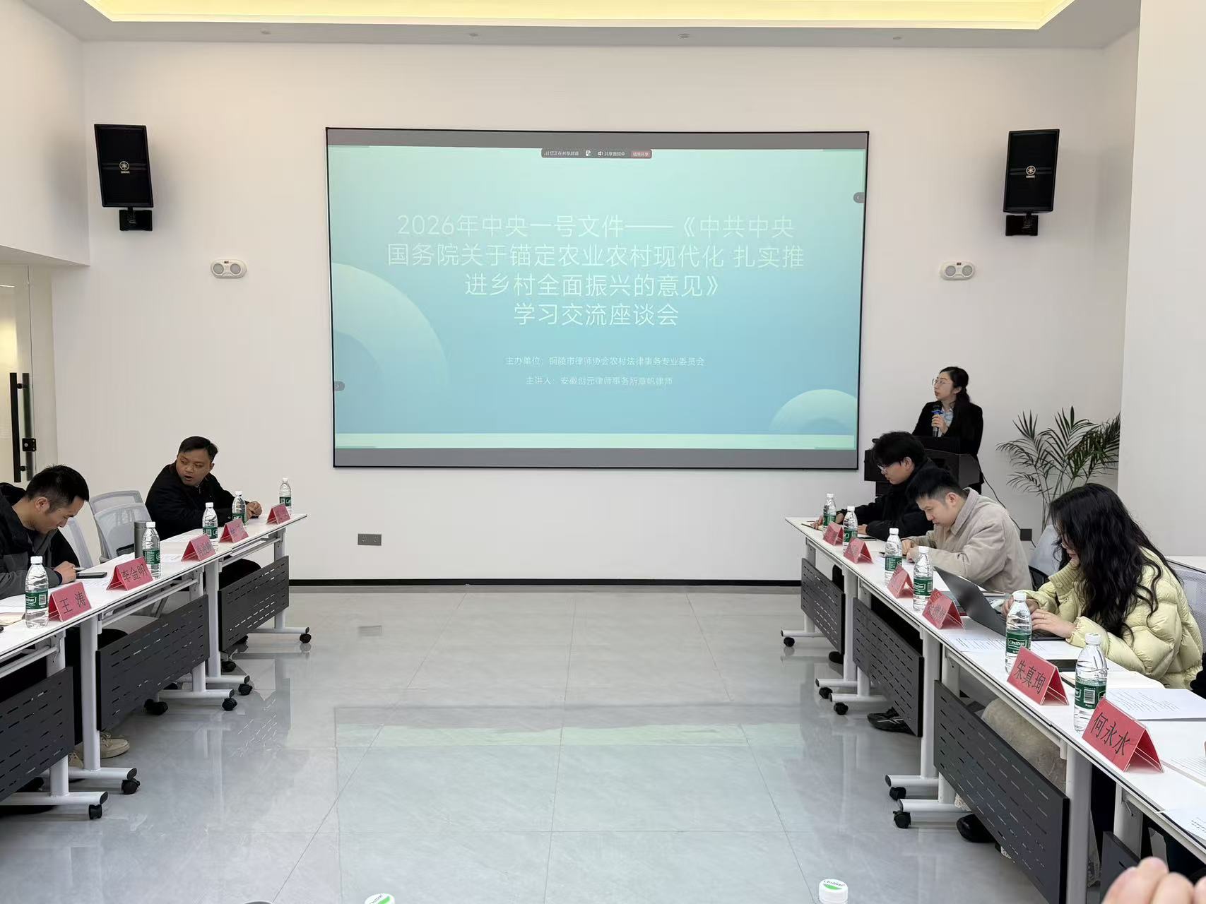 2026年3月21日上午,市律协农专委在创元律师事务所举办了学习贯彻2026年中央一号文件《中共中央国务院关于锚定农业农村现代化扎实推进乡村全面振兴的意见》暨“律师服务乡村振兴”专题研讨活动。铜陵学院法学与公共管理学院院长吴孔军和市律师行业党委副书记、市律协会长严锐出席活动,并进行了致辞、点评和总结。