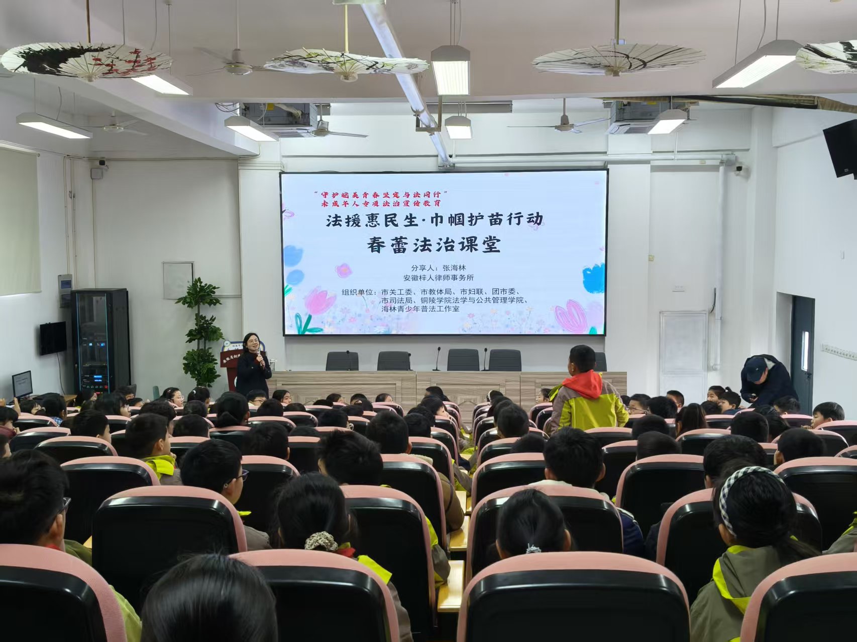 3月5日上午,张海林律师受邀走进铜陵市淮河路小学,开展了春蕾法治课堂。王方律师、彭雯雯律师作为志愿者共同参加活动。讲座围绕预防校园欺凌、网络安全及未成年人自我保护等主题展开,张律师结合真实案例,以案释法,将法律知识转化为实用的自护指南。现场互动热烈,有效引导学生增强法治意识,提升自我保护能力,为构建平安校园保驾护航。