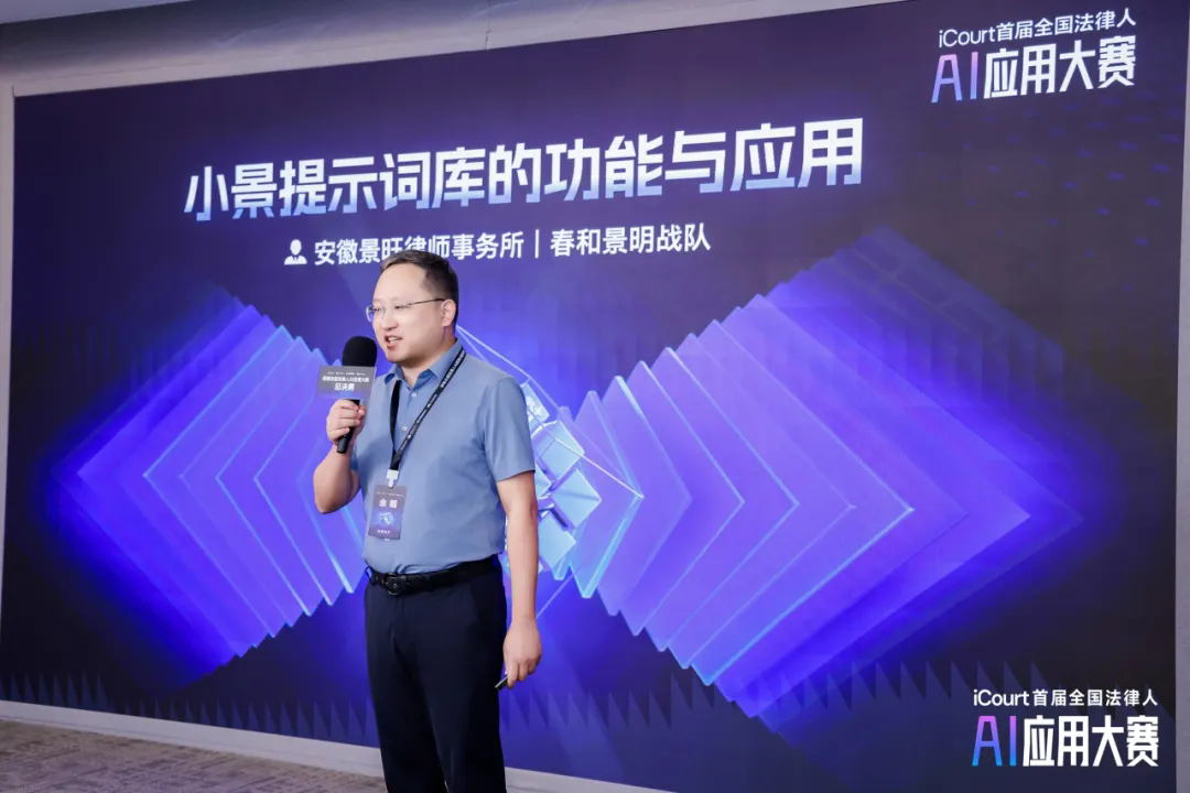 总决赛现场,群英荟萃,竞争空前激烈。安徽景旺律师事务所“春和景明”战队的核心成果——“小景提示词库”,再次以其精准的痛点洞察和极具独创性的解决方案,征服了现场的专家评委。