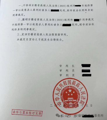 近日,铜鼎律师事务所合伙人孙小玲律师收到了由其辩护的谢某某死刑复核案件裁定书。在一审判决被告人死刑立即执行、二审已经过审判委员会讨论决定仍然维持死刑判决的情况下,孙小玲律师以出色的专业能力以及坚定的信念,在死刑复核阶段为被告人争取到了不予核准死刑、撤销原判并发回重审的结果,让法治之光在法律的殿堂中再次闪耀。