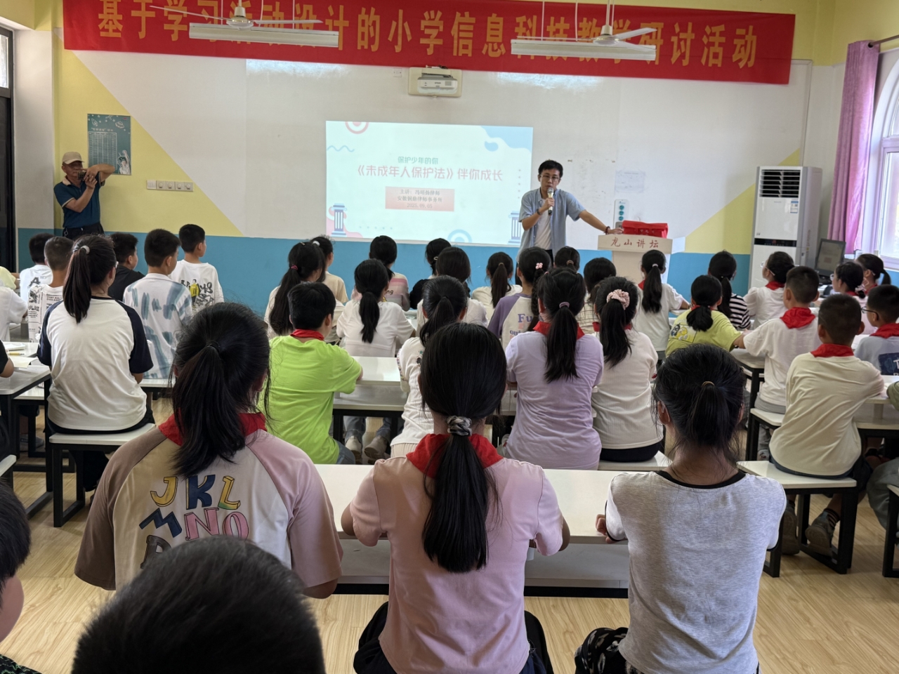 为深入贯彻习近平法治思想,引导未成年人增强法治意识,提升自我保护能力,9月5日,铜陵市田家炳小学(龙山湖校区)邀请安徽铜鼎律师事务所冯昭扬律师开展“开学第一课”法治宣传教育活动。主讲人冯昭扬律师以“保护少年的你”为宣讲主旨,结合法律条文与真实案例,为学校师生及家长代表带来一堂生动的权益保护课。