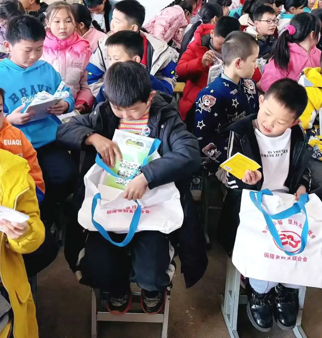 宣讲结束后,工作人员将提前准备好的“学习用品大礼包”逐一送到孩子们手中。礼包里不仅有实用的文具用品,还有富含法治知识的笔记本,既满足了学习需求,也延续了普法主题。接过崭新的笔记本与学习文具,孩子们脸上洋溢着灿烂的笑容。小小的礼物承载着社会各界对未成年人的关怀,也让法治教育多了一份温暖的底色。
