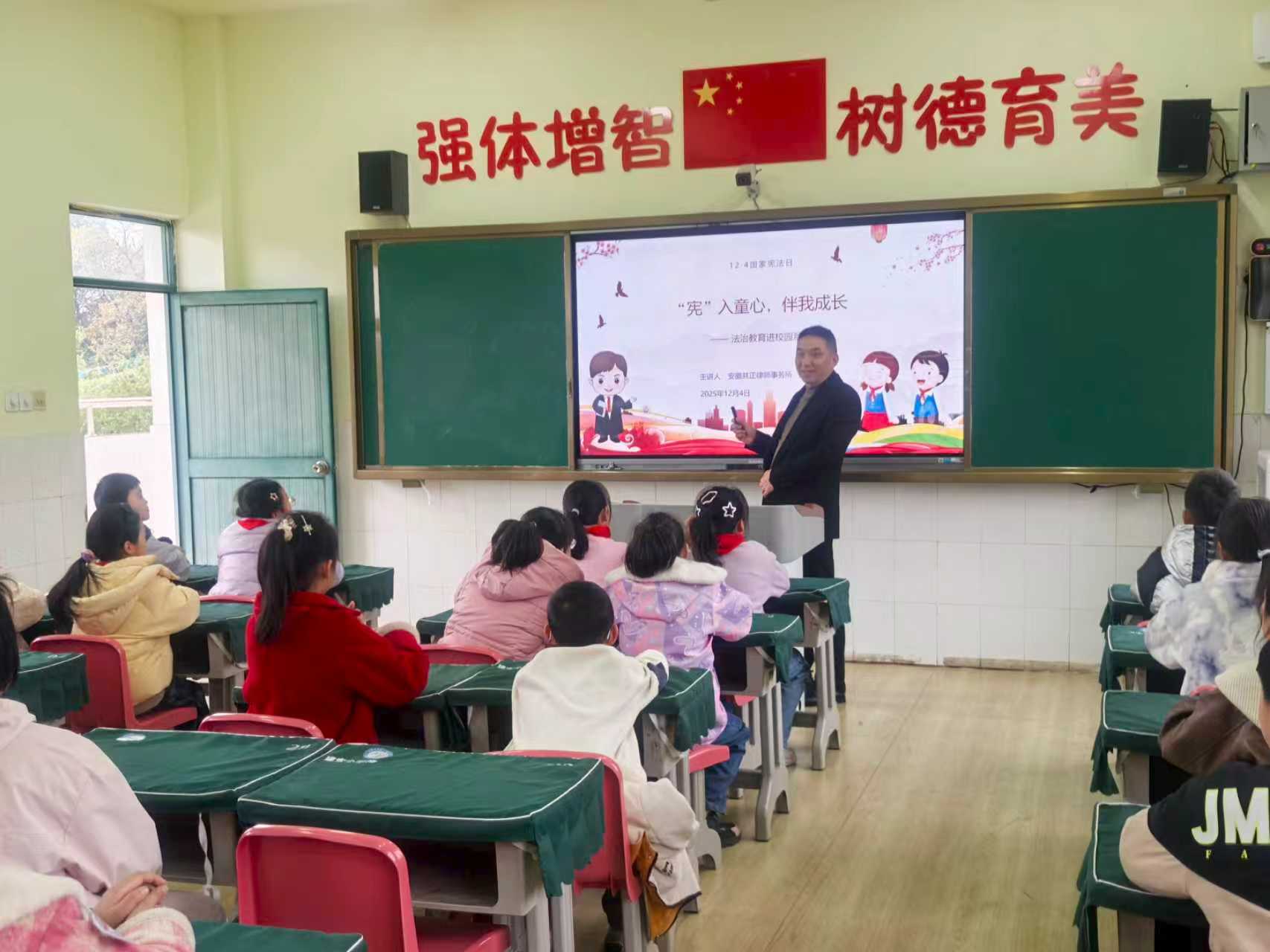 2025年12月4日,我国第十二个国家宪法日如约而至,恰逢全国“宪法宣传周”活动深入开展之际。当天下午,安徽共正律师事务所党支部联合铜官区扫把沟司法所积极响应“学习宣传贯彻习近平法治思想,推动宪法深入人心”的活动主题,党员律师陈继群走进铜陵市建安小学滨江校区,以《“宪”入童心,伴我成长》为主题开展了宪法知识专题讲座,用法律专业力量将法治精神送进校园、浸润童心。