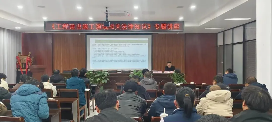 2025年12月27日下午,安徽众佳律师事务所应安徽省华通路桥工程有限责任公司邀请,开展《工程建设施工领域相关法律知识》专题讲座。该律所金华律师担任主讲嘉宾,为该公司机关全体人员、各单位主要负责人、各项目负责人以及合同管理人员等30余人进行了专业法律培训。