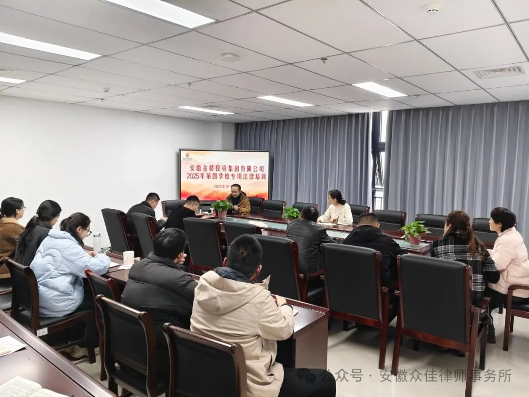 为积极响应国有企业对法治建设与数字化转型的迫切需求,12月30日,安徽众佳律师事务所的黄世亮律师主动前往安徽金桥投资集团有限公司开展专题培训。本次培训聚焦国有企业法律实务与人工智能高效应用两大主题,旨在助力企业提升合规管理能力与智能化水平。