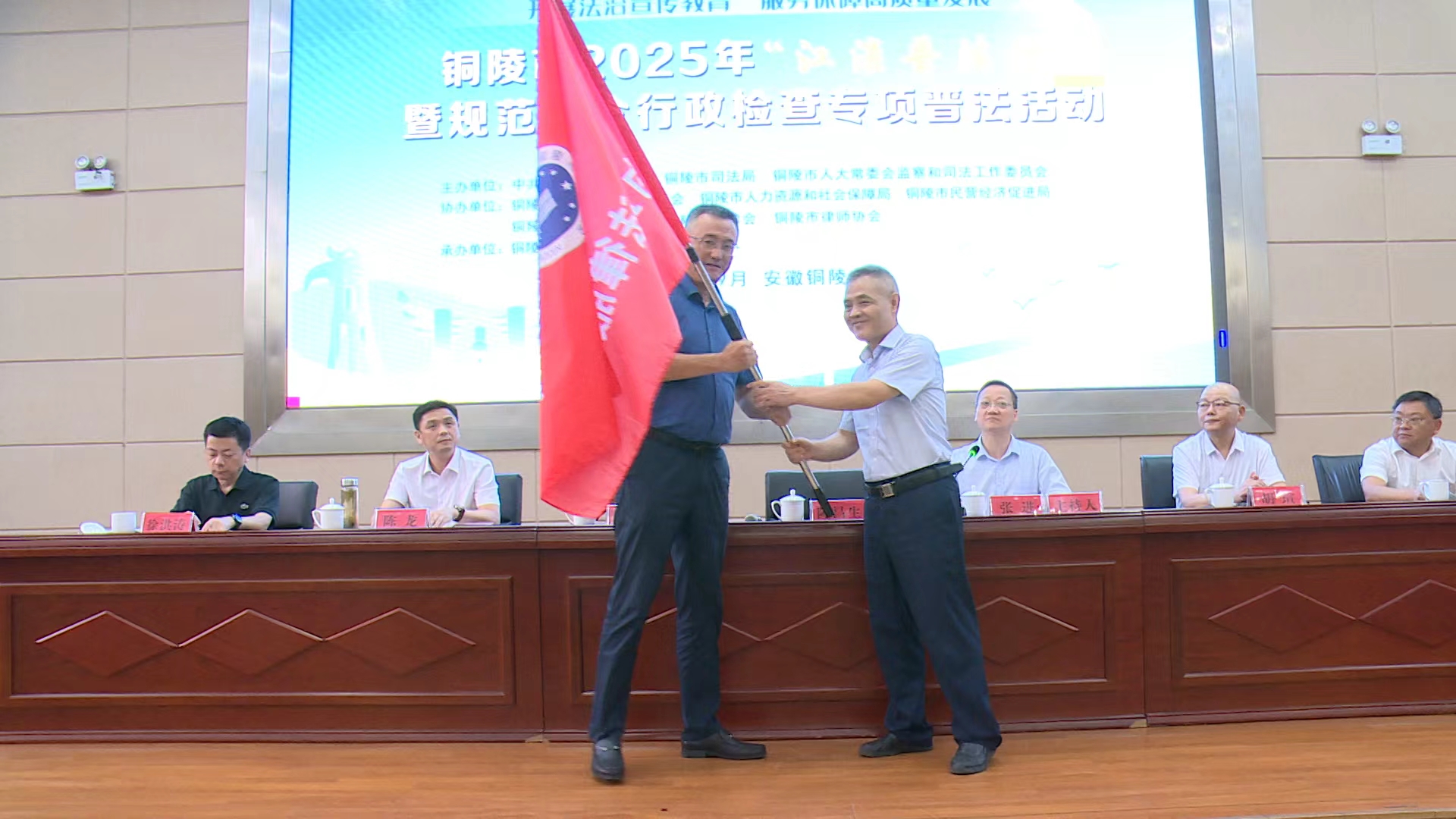 9月19日上午,我市2025年“江淮普法行”暨规范涉企行政检查专项普法活动启动仪式在铜陵经开区泰富特种材料有限公司大礼堂举行。活动现场,市人大常委会党组副书记、副主任陈昌生为市律协“为企法律服务队”授旗,标志着市律协以法治护航企业发展的专项行动正式拉开帷幕。