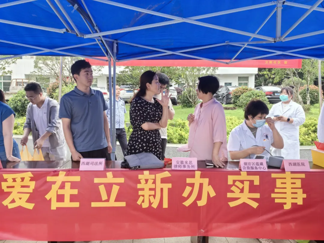 2025年6月21日,中共安徽来思律师事务所支部委员会积极响应“为民办实事”号召,由本所党支部书记、主任曹元海律师带队,施敏婵律师、王振宇实习律师共同参与,走进铜陵市铜官区西湖镇立新社区新湖法治广场,助力社区“爱在立新办实事,维权关爱到身边”主题活动,将专业法律服务送到居民“家门口”。